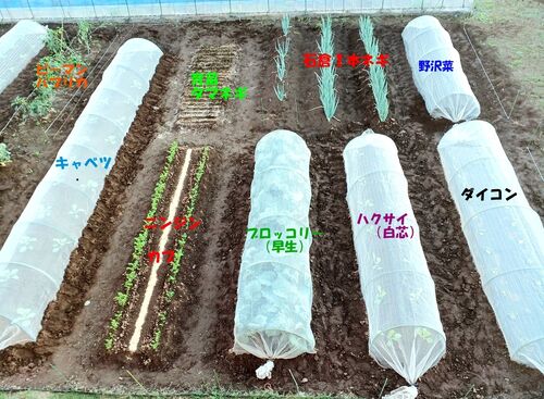 10月の菜園(西) (東) 種まき トレイ・ポットに種まきしました(^o^) 石倉一本太ネギ すじ蒔き ソラマメ 28ポットに 一粒づつ スナップエンドウ 48ポットに 2粒づつ . 籾殻・新聞紙をかけて 日陰で発芽を待ちます(・∀・) ソラマメとスナップエンド…